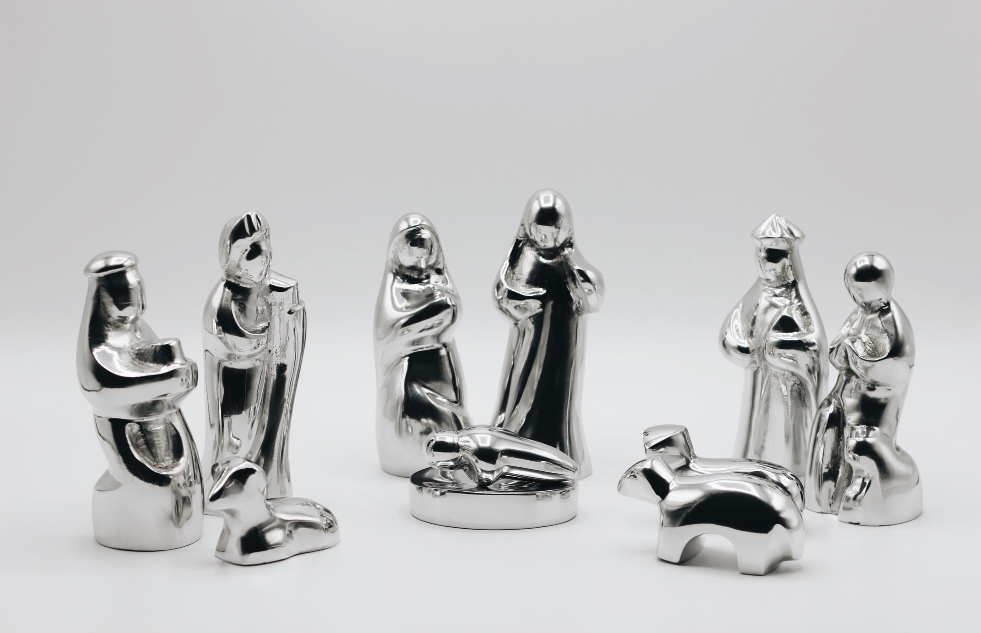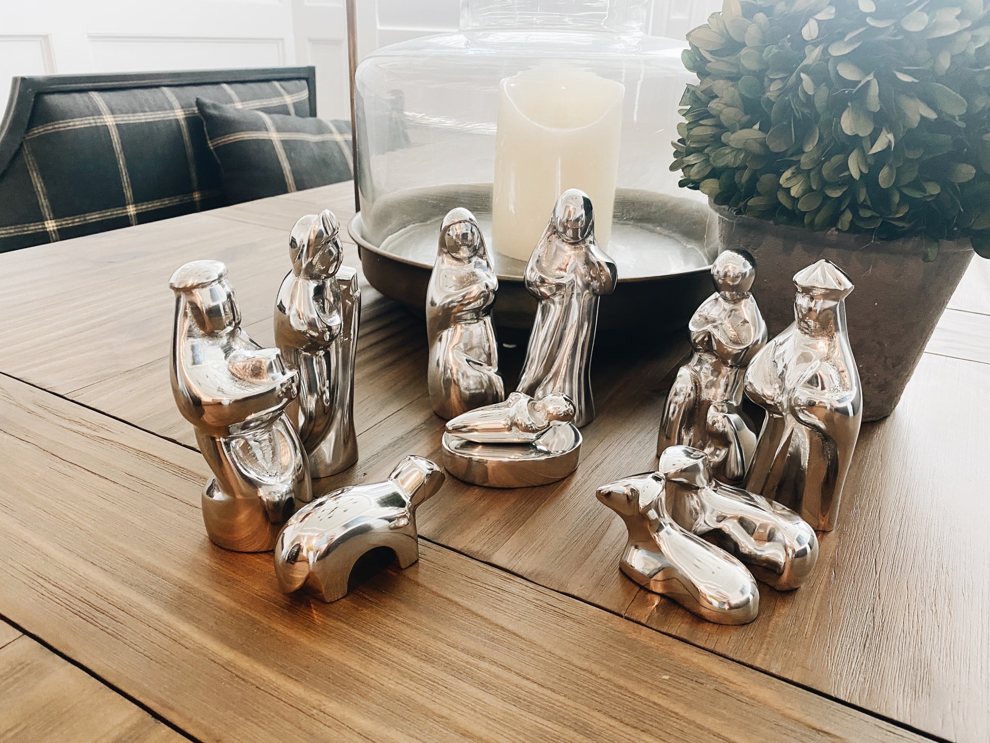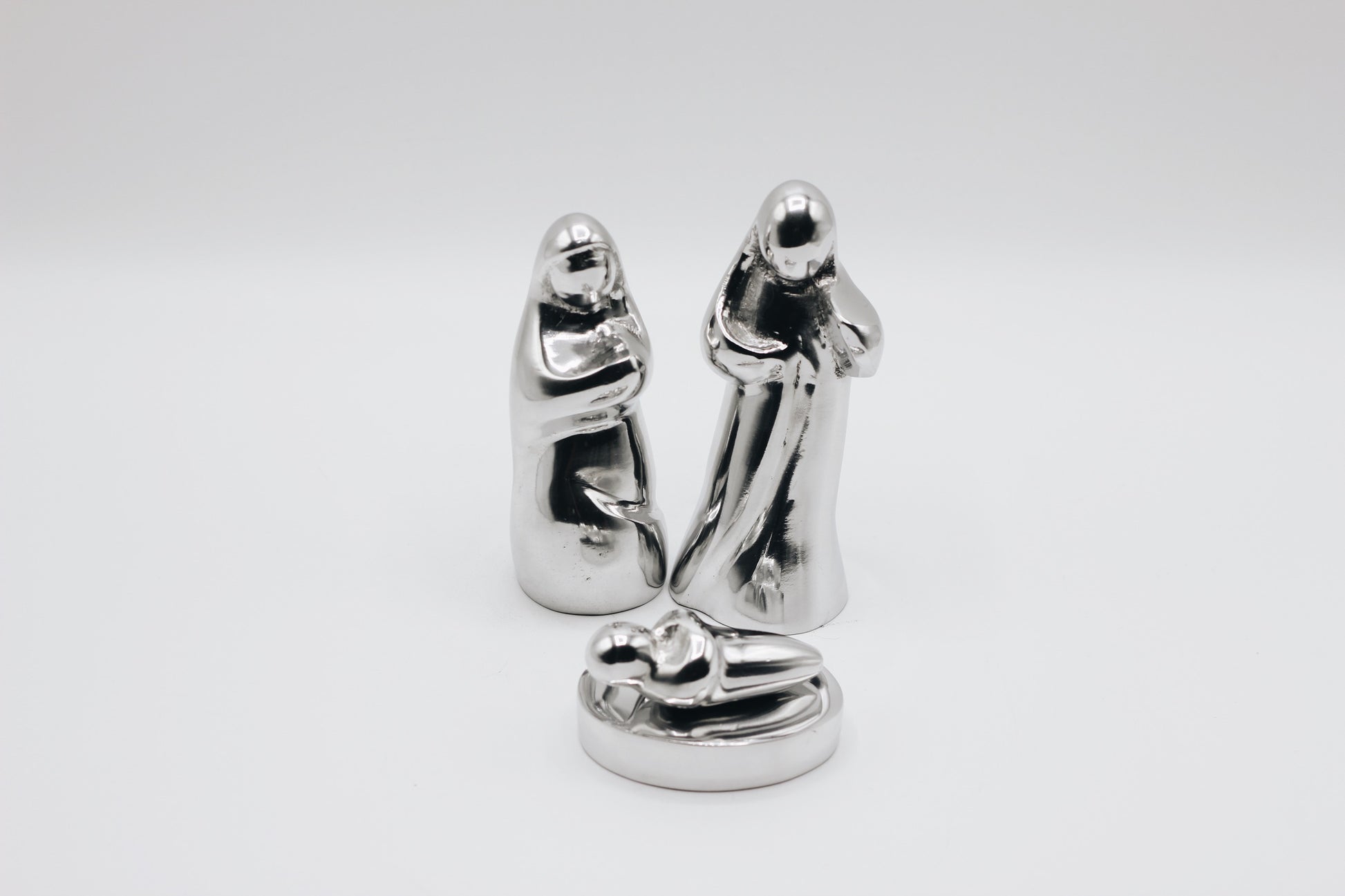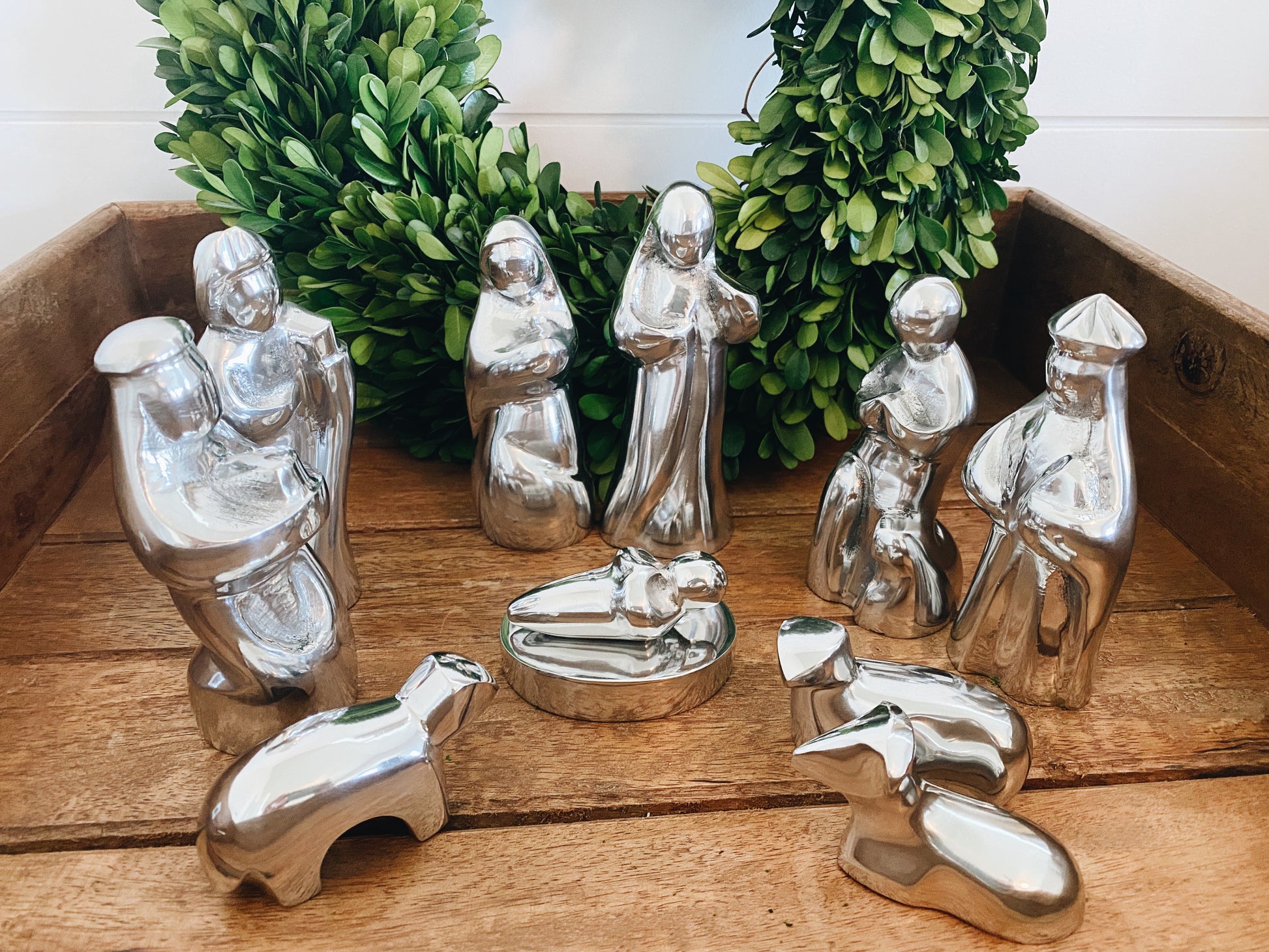 Discover the timeless beauty of our adorable Mini 11-Piece pewter Nativity Set. This set includes iconic figures such as Joseph, Mary, baby Jesus, and a cast of charming animals and additional figures, all exquisitely crafted with a modern and sleek aesthetic. Add a touch of elegance to your holiday decor with this captivating nativity set, celebrating the true spirit of the season.