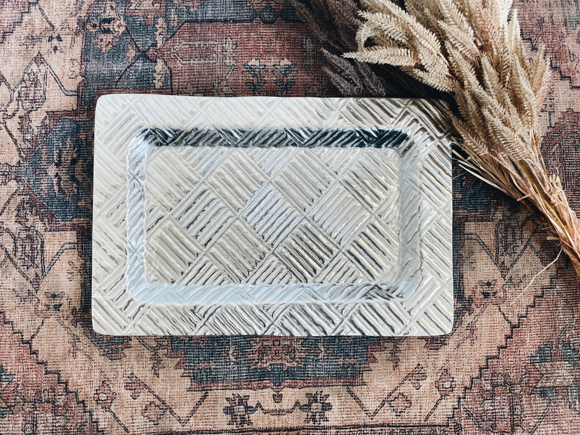 Introducing the Acres Tray – where patterns come to life. This medium-sized rectangle tray features a captivating diamond pattern with vertical lines. A blend of elegance and functionality, the Acres Tray adds a touch of visual intrigue to any occasion. This tray is perfect for gatherings and everyday use, celebrating the beauty of design with its dynamic pattern play.