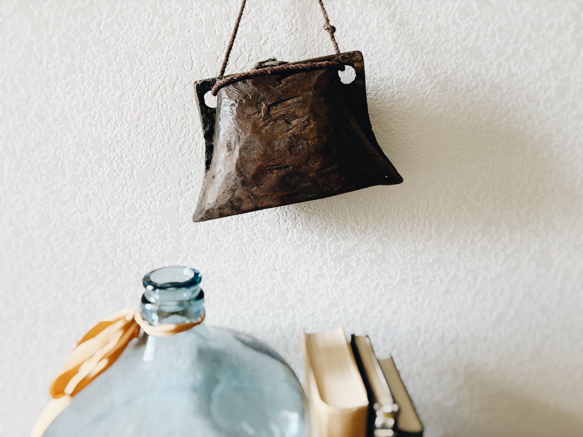 Previously used as a traditional cow bell Variations in the tone, colouration and size are to be expected due to the original nature of the item. Flaws are a feature of its history, and are not considered to be faults. Please be aware that as these are one of a kind items, no two pieces will be alike, resulting in the piece you receive being slightly different than pictured.
