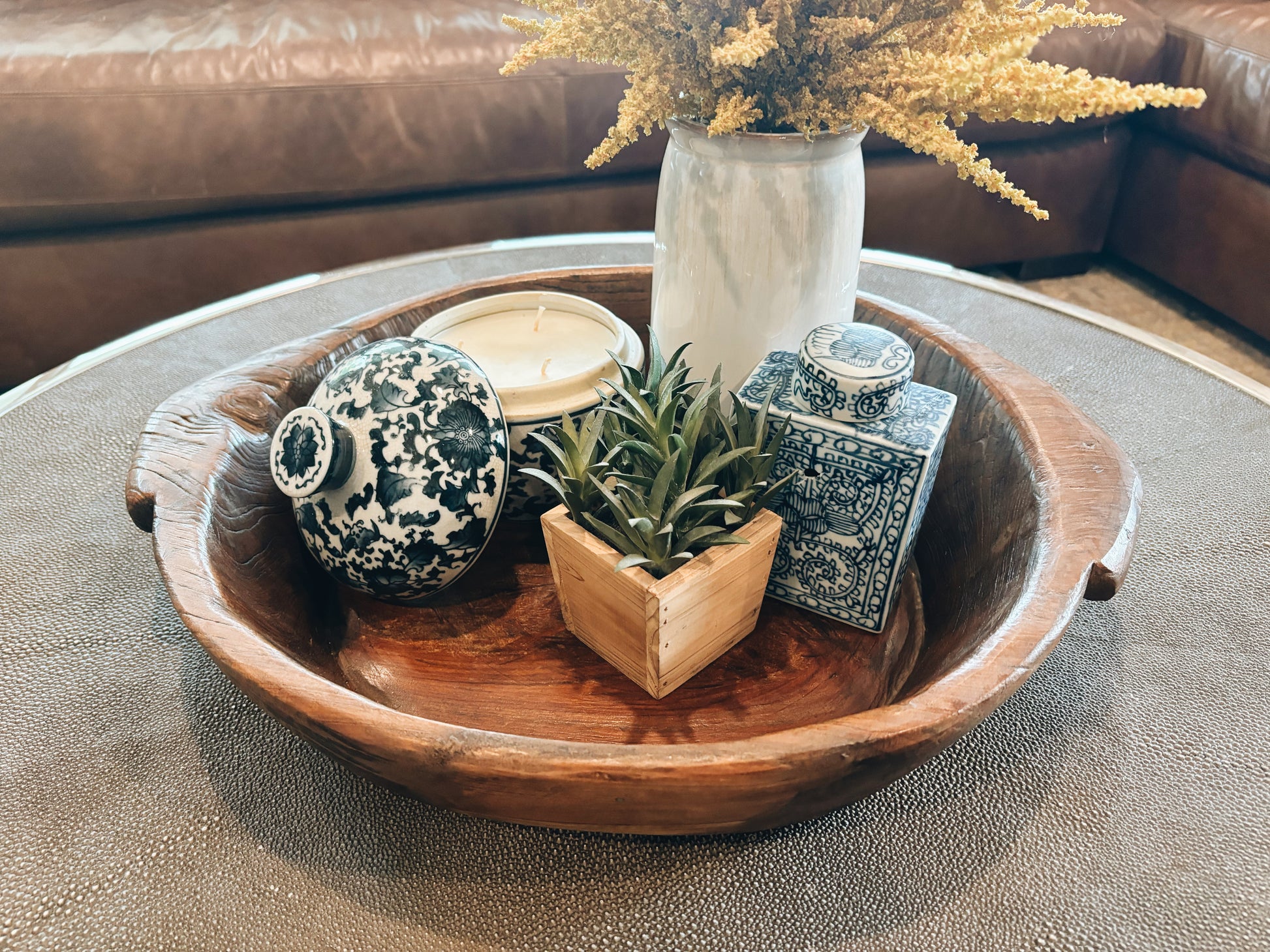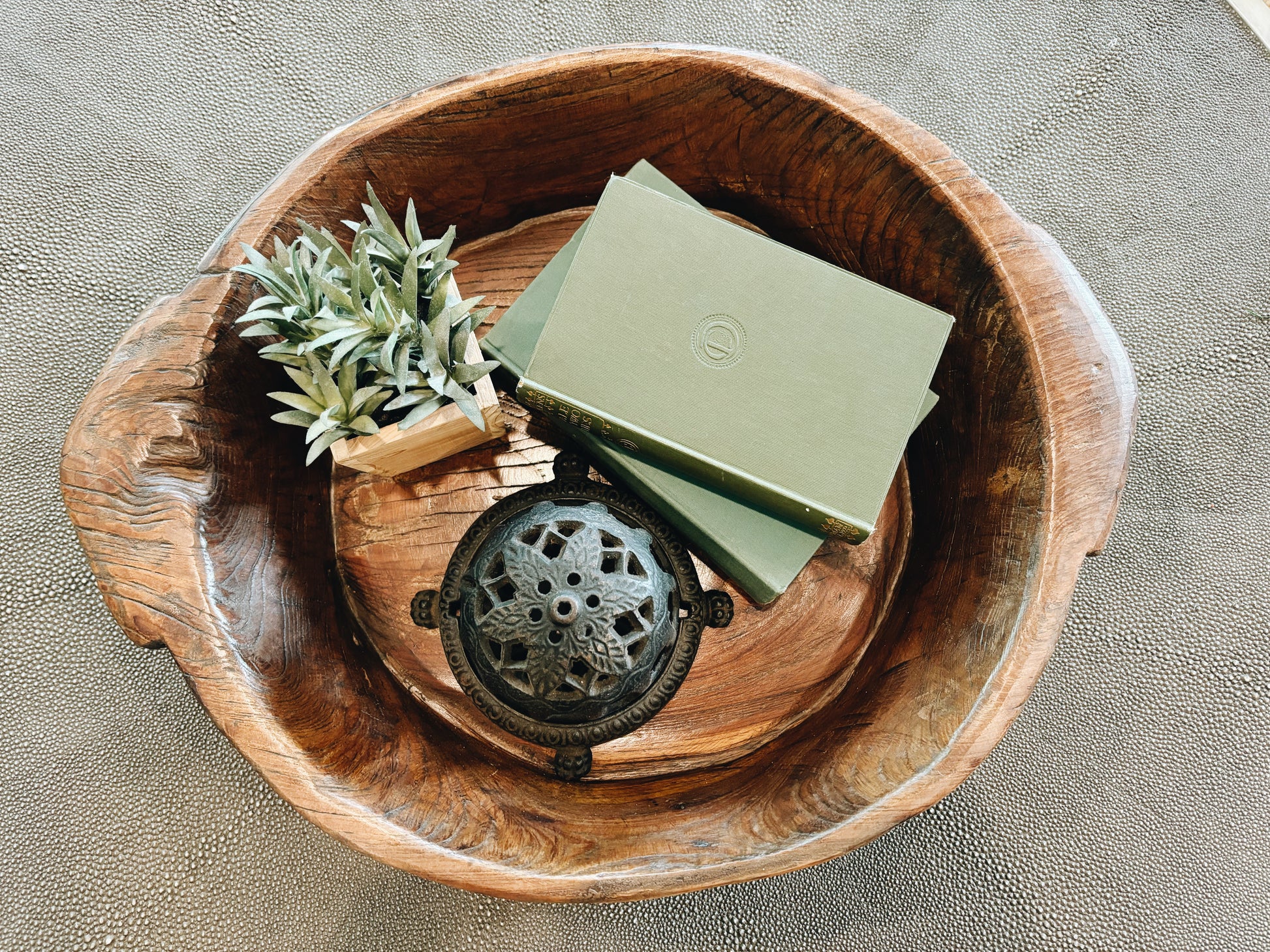 Hand-carved from solid wood, the wooden parat bowl brings a touch of warmth and nostalgia to your home. Originally used in traditional Indian kitchens, this versatile bowl is now a functional and stylish addition to any modern home. Display it on the countertop or use it as a centerpiece for your dining table, and let its earthy beauty and timeless appeal elevate your home aesthetic. This is part of the Fairmile Co collection.